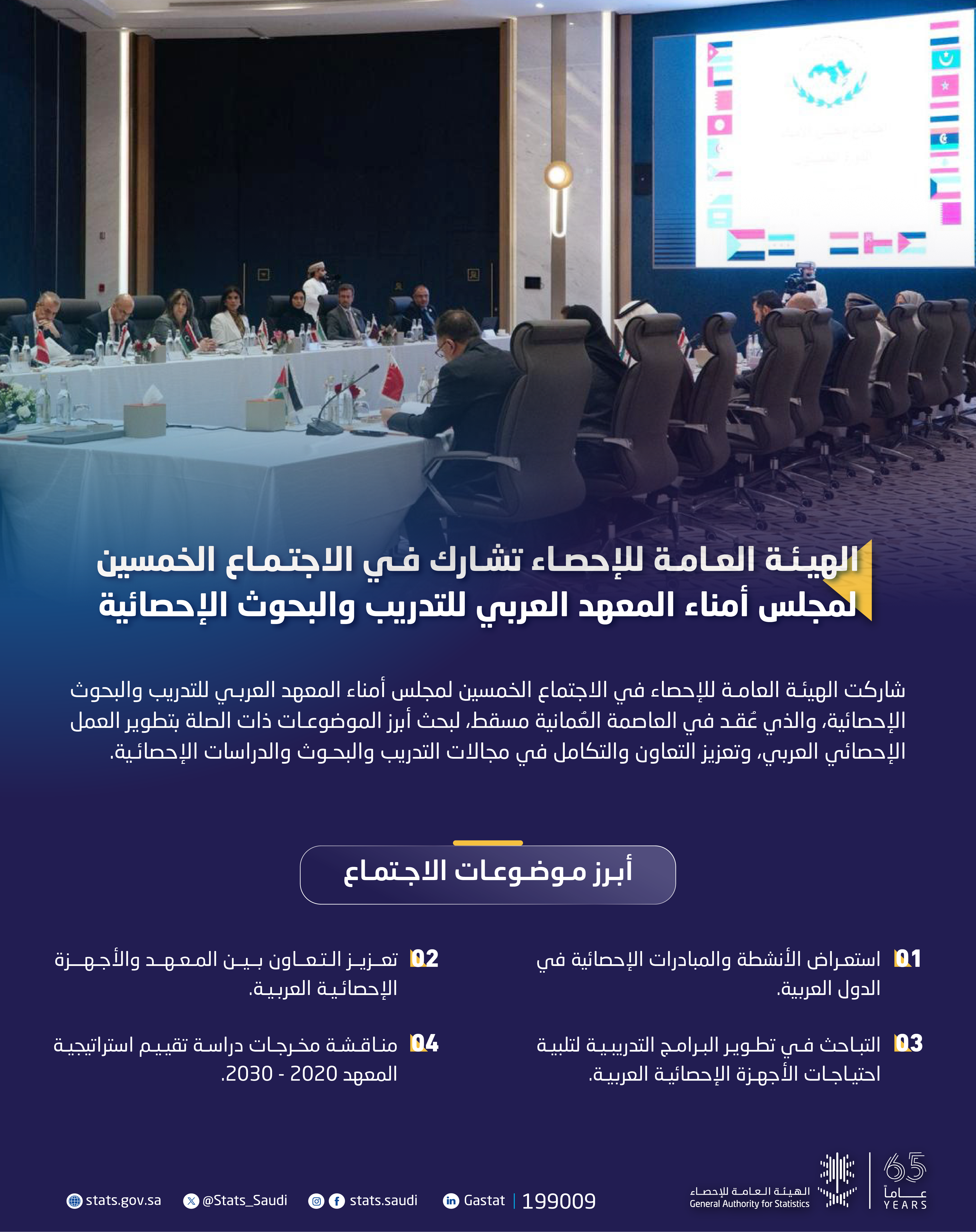 الهيئة العامة للإحصاء تشارك في الاجتماع الخمسين لمجلس أمناء المعهد العربي للتدريب والبحوث الإحصائية