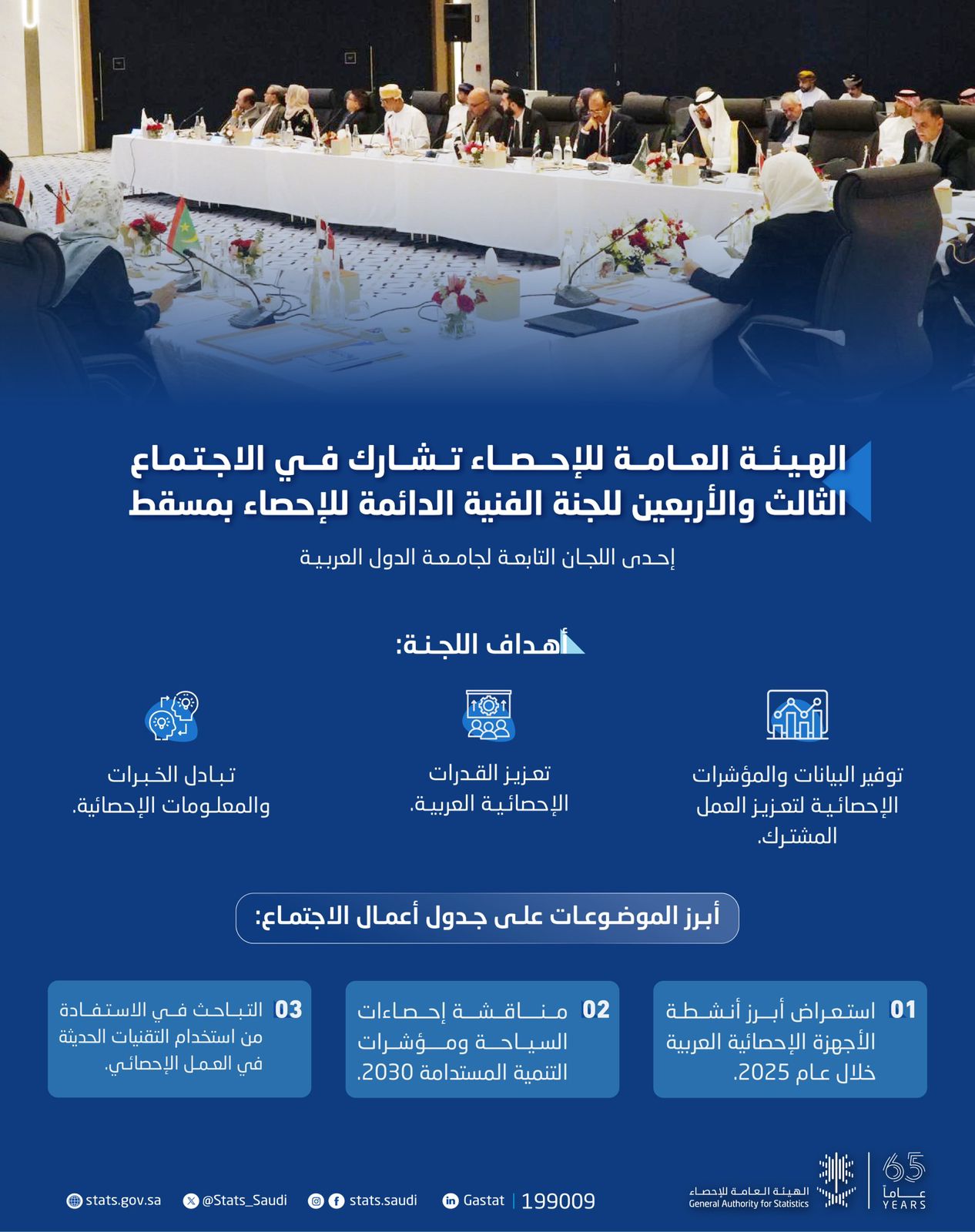 الهيئة العامة للإحصاء تشارك في الاجتماع الثالث والأربعين للجنة الفنية الدائمة للإحصاء بمسقط